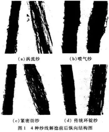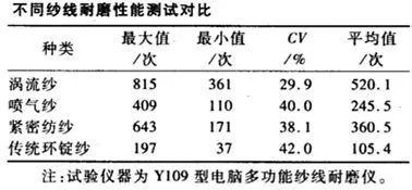 渦流紗和噴氣紗均由芯纖維和外包纖維兩部分組成,紗芯表面包郵纏繞纖維,紗線不易產生相對滑移,故耐磨性高。