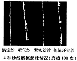 渦流紗耐磨性好于噴氣紗是由于外包纖維規(guī)則螺旋包纏,且外包纖維比重大以致內部未加捻的纖維幾乎完全被覆蓋。